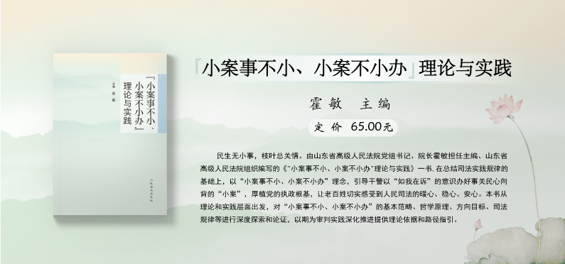 内容简介:民生无小事,枝叶总关情。由山东省高级人民法院党组书记、院长霍敏担任主编、山东省高级人民法院组织编写的《"小案事不小、小案不小办"理论与实践》一书,在总结司法实践规律的基础上,以“小案事不小、小案不小办”理念,引导干警以“如我在诉”的意识办好事关民心向背的“小案”,厚植党的执政根基,让老百姓切实感受到人民司法的暖心、稳心、安心。本书从理论和实践层面出发,对“小案事不小、小案不小办”的基本范畴、哲学原理、方向目标、司法规律等进行深度探索和论证,以期为审判实践深化推进提供理论依据和路径指引。