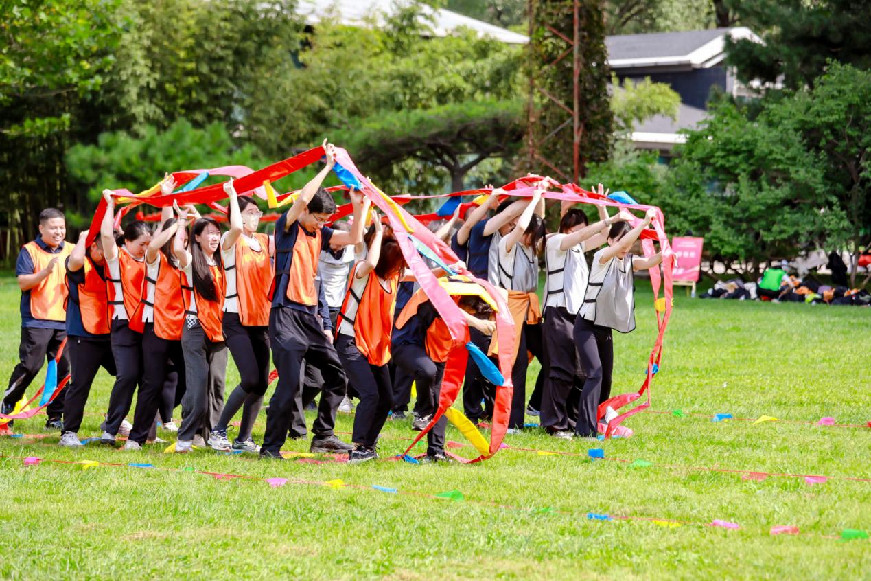 活动伊始的破冰分组环节便迅速点燃了现场气氛,全社员工被平均分为十队,各队在教练的指导下快速融合,共同构思响亮的队名与口号。激情的呐喊声展现了强烈的团队认同感。大家全身心投入,在挑战中突破自我,在协作中增进情谊。