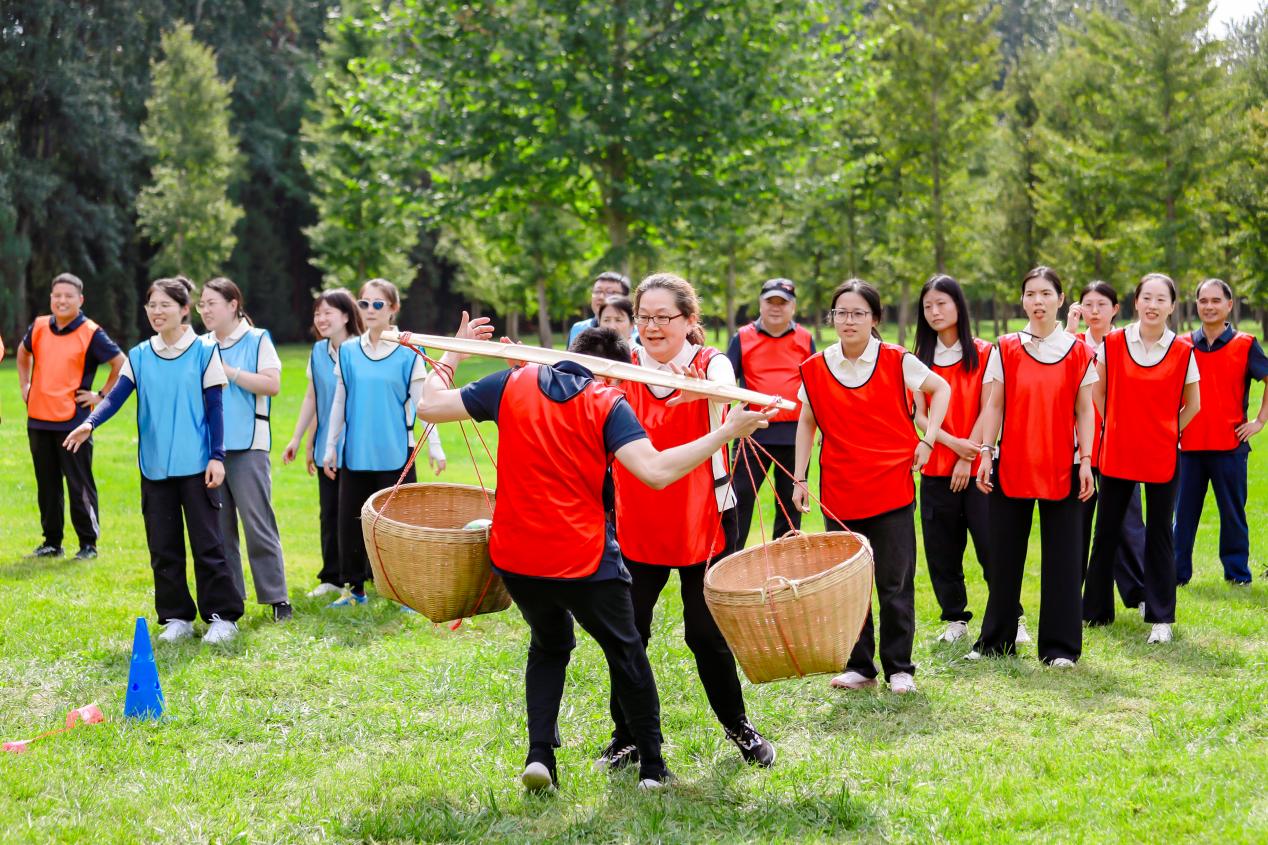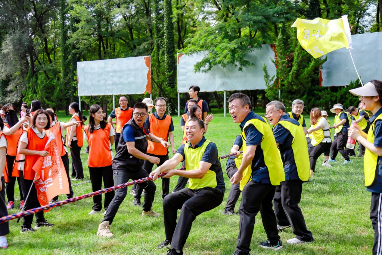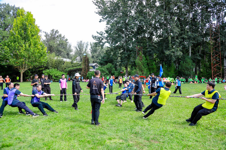 “支援前线”项目考验着队员之间的高效执行能力;“默契行军”项目要求队员之间步调一致、心领神会;“朱德的扁担”项目让大家体会到分工协作与平衡艺术的重要性;“击鼓送红军”项目中,阵阵鼓声伴随着整齐的动作,将团队节奏感与凝聚力推向高潮;最后进行的传统项目“拔河”,更是力量的角逐与意志的比拼。现场加油声、呐喊声此起彼伏,气氛热烈非凡。