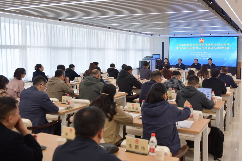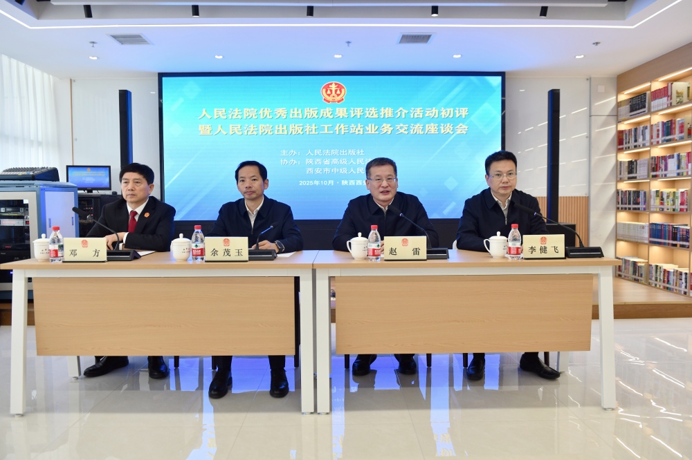 10月28日,人民法院优秀出版成果评选推介活动初评暨人民法院出版社工作站业务交流座谈会在西安举行。会议认真学习贯彻党的二十届四中全会精神,落实最高人民法院关于加强人民法院出版工作的要求,以共商共建共享思路,激励全国法院系统加强司法理论研究与审判实践成果转化,完善人民法院出版社工作站机制,推动优质法治文化资源直达审判一线,为服务严格公正司法、矛盾纠纷源头预防化解提供坚实智力支撑。人民法院出版社党委书记、社长余茂玉,陕西省高级人民法院党组成员、政治部主任邓方,陕西省西安市中级人民法院党组书记、院长赵雷出席会议,人民法院出版社总编辑助理、工作总站站长李健飞主持会议。