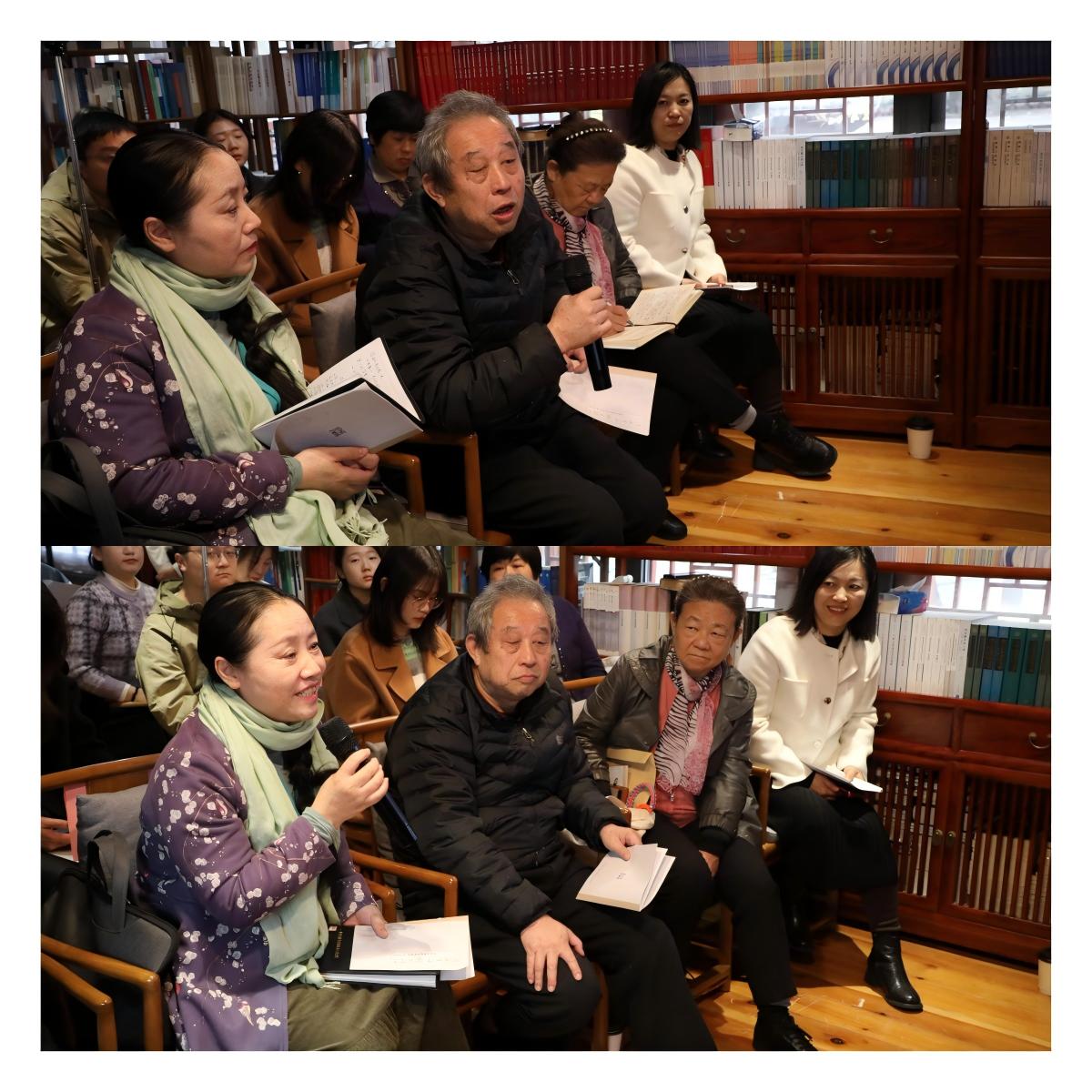 最高人民法院民一庭青年理论学习小组组长、三级法官助理侯玉晖表示:“作为一名民事审判辅助人员,以前更多是学习沈家本的法律思想,今天通过诗歌品读,更立体地理解了他‘以法救国’的初心,这对我们践行司法为民的宗旨很有启发。”沈家本故居志愿者分享了对沈家本先生手迹的赏析感悟,以及日常讲解工作中的心得体会,并结合《水仙》等诗歌,深入探讨了“玉骨冰心冷不摧”的精神内涵。沈厚铎教授对此回应道,沈家本先生常以梅、兰、竹、菊自比,这正是他坚守初心、不畏艰难的精神写照。来自中国科学院自然科学研究所的博士生则围绕沈家本在法医学领域的研究及著作版本问题与沈教授交流,现场氛围热烈而融洽。