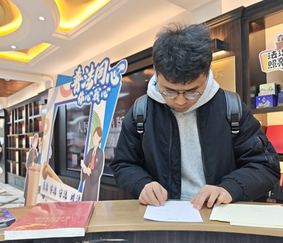 结合全民普法40周年背景,法信书店推出多项惠民举措深化普法成效,用“小福利”撬动“大学法”热情:提供免费法治主题集章服务,开展“学法购书享优惠”活动,设置“普法文创专区”,购买模拟法庭法槌及周边文创可获赠《中华人民共和国宪法》读本,让法治记忆以实用、亲切的形式融入读者日常。